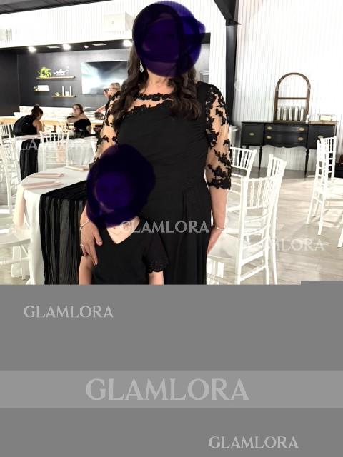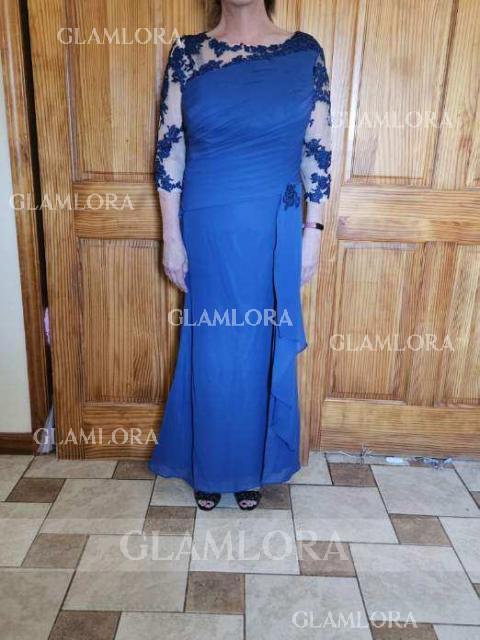 • Sheath/Column Gorgeous Scoop 3/4 Sleeves Floor-Length Chiffon Mother of the Bride Dress