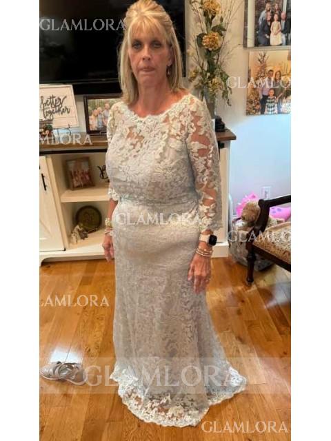 • Sheath/Column Scoop 3/4 Sleeves Floor-Length Tasteful Lace Mother of the Bride Dress