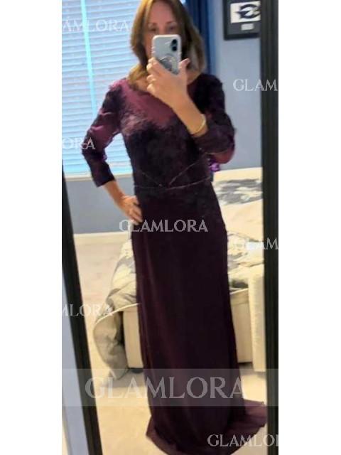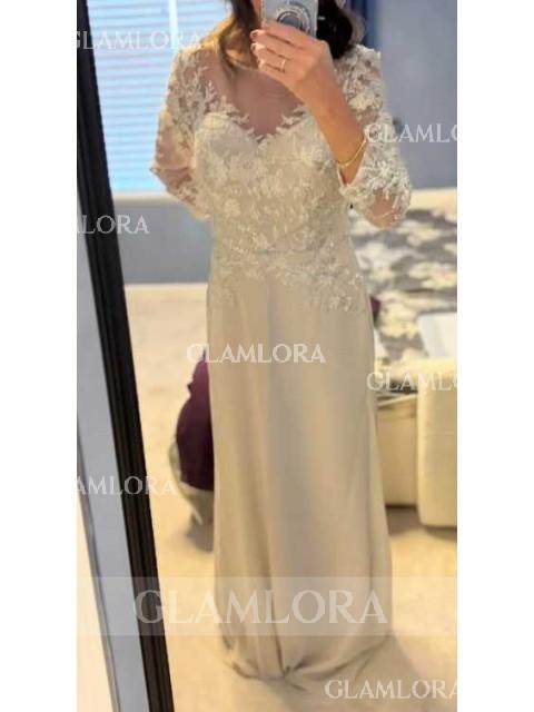 • Sheath/Column Scoop Long Sleeves Floor-Length Graceful Chiffon Mother of the Bride Dress