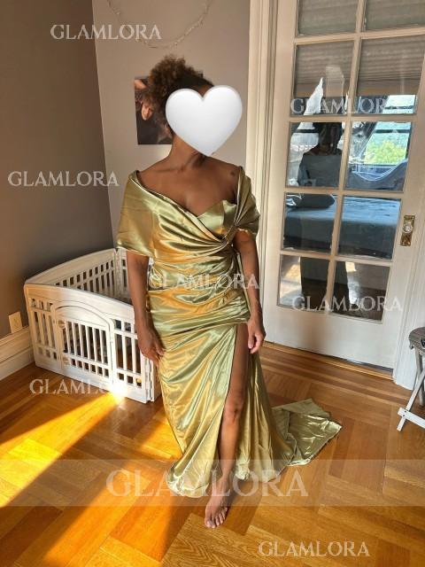 • Sheath/Column Sexy Court Train Silk like Satin Bridesmaid Dress With Slit