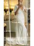 Slinky Sheath/Column V-Neck Short Sleeves Sweep Train Charmeuse Wedding Dress