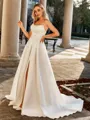 Exude timeless elegance in this A-line wedding dress, featuring a straight neckline, sleeveless design, and graceful pleats. Crafted from luxurious satin, it boasts a sweeping court train that adds a touch of sophistication. Perfect for a bride seeking classic beauty and understated glamour on her wedding day.