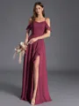 • Splendid A-line Cold Shoulder Ruffles Floor-Length Chiffon Bridesmaid Dress