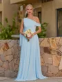 • Splendid A-line One-Shoulder Pleated Floor-Length Chiffon Corset Bridesmaid Dress
