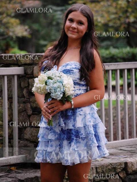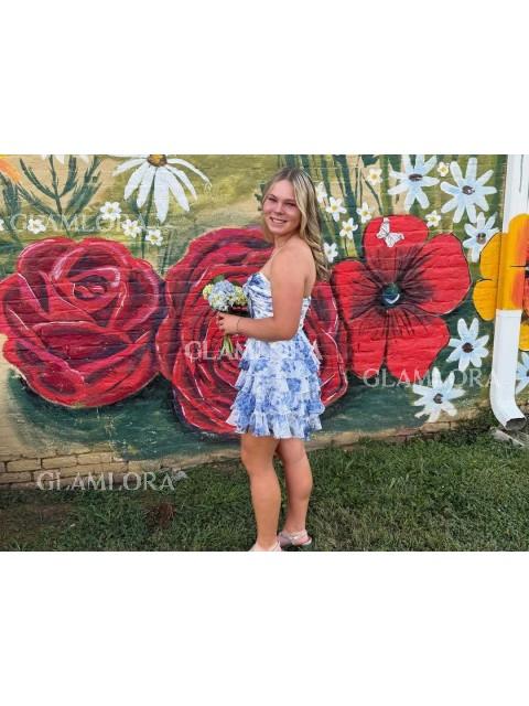 This Glamlora blue floral sweetheart chiffon dress perfectly blends sweet design with practical tailoring. The A-line silhouette naturally flatters the waist-to-hip ratio, and the cropped hem allows for easy walking and dancing. The cascading ruffles sway gracefully, adding a touch of movement and layering. The sweetheart neckline gently hugs the neckline, and the sleeveless design is breathable and refreshing, making it perfect for summer or indoor activities. The hidden back zipper makes it easy to put on and take off, maintaining a clean and sleek look. The light and smooth chiffon fabric is comfortable to wear, even for long periods of time. The overall close fit allows for freedom of movement, making it perfect for parties, birthdays, or gatherings with friends.