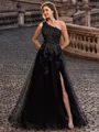 • Statuesque A-line One-Shoulder Appliques Lace Floor-Length Tulle Prom Dress