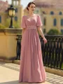 • Striking A-Line/Princess Chiffon Ruched V-Neck 1/2 Sleeves Floor-Length Mother of the Bride Dresses