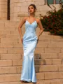 A striking sheath prom dress crafted from smooth, elastic woven satin, adorned with delicate lace appliques and featuring a flattering V-neckline. The sleeveless design enhances its sleek silhouette, while the floor-length hem creates a refined, graceful look perfect for making a stylish entrance.