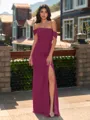 • Striking Sheath Off-the-Shoulder Pleated Floor-Length Chiffon Bridesmaid Dress