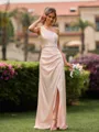• Striking Sheath One-Shoulder Pleated Floor-Length Silk Like Satin Bridesmaid Dress