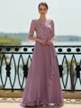 Stunning A-line Scoop 3/4 Sleeves Appliques Lace Floor-Length Chiffon Mother of the Bride Dress