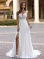 Stylish A-Line/Princess Chiffon Applique Straps Sleeveless Sweep/Brush Train Wedding Dress