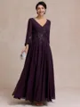 Stylish A-line V-Neck Long Sleeves Appliques Lace Ankle-Length Chiffon Mother of the Bride Dress