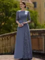 Stylish Sheath Scoop 3/4 Sleeves Appliques Lace Floor-Length Satin Mother of the Bride Dress