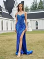 • Stylish Sheath V-Neck Appliques Lace Sweep Train Sequins Corset Prom Dress