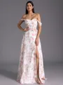 • Tasteful A-line Off-the-Shoulder Pleated Floor-Length Bridesmaid Dress