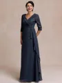 • Tasteful A-line V-Neck 3/4 Sleeves Appliques Lace Floor-Length Chiffon Mother of the Bride Dress