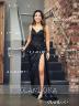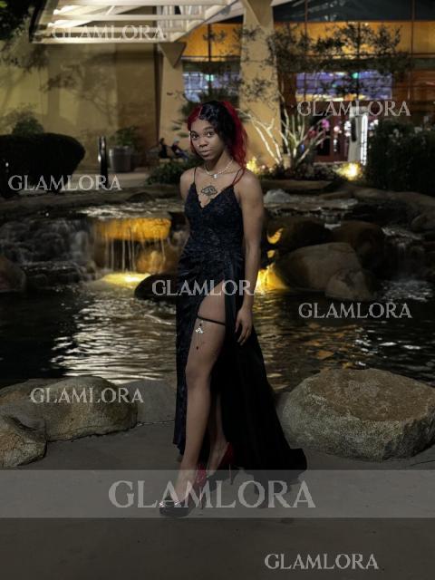 Teasing Sheath/Column Silk like Satin V-neck Sweep Train Prom Dress With Slit #GLWH1257