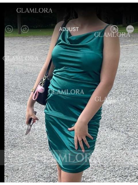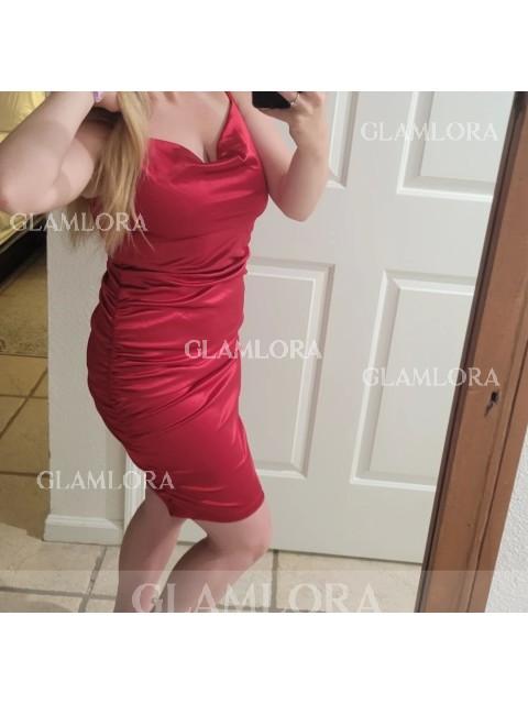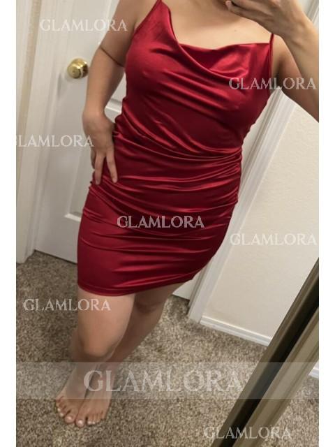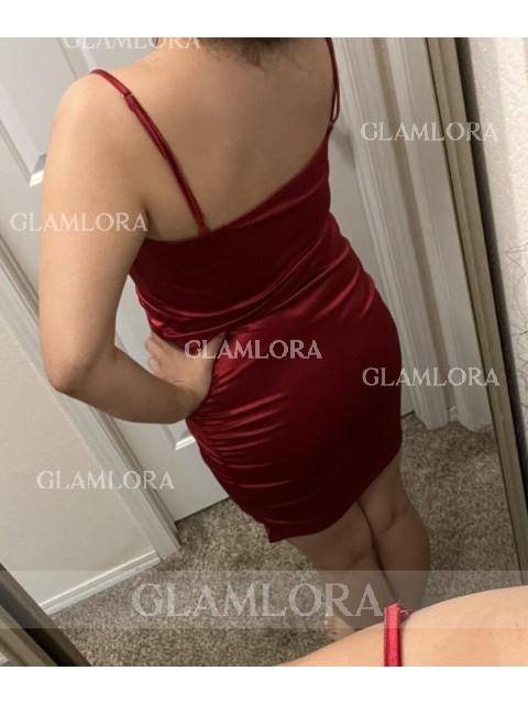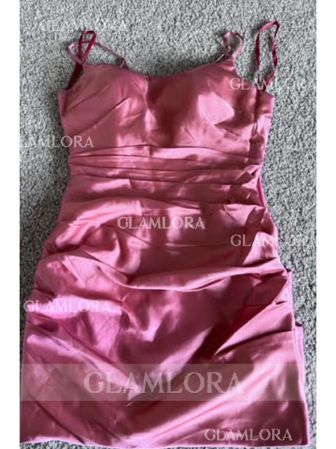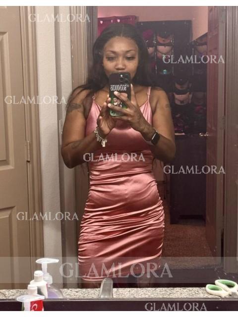 Warning: Undefined property: Product::$size_chart in /data1/www/glamlora-com.myamz2022.com/htdocs/controllers/front/ProductController.php on line 1066 Tight Sheath/Column Spaghetti Straps Sleeveless Silk like Satin Short/Mini Homecoming Dress With Ruched - Glamlora