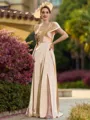 An elegant A-line Mother of the Bride dress with a sleeveless design and delicate pleating details that add texture and movement. Made from silk like satin, it offers a comfortable and flattering fit. The floor-length silhouette enhances the graceful and sophisticated look, making it a perfect choice for a memorable and stylish occasion.