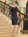 • Timeless Sheath Scoop 3/4 Sleeves Appliques Lace Knee-Length Satin Mother of the Bride Dress