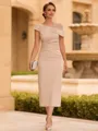 Timeless Sheath Scoop Short Sleeves Pleated Tea-Length Mother of the Bride Dress