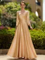 • Trendy A-Line/Princess Silk like Satin Ruched V-Neck 3/4 Sleeves Ankle-Length Mother of the Bride Dress