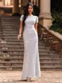 An elegant sheath prom dress featuring a scoop neckline and short sleeves. Falling to a floor-length hem, it creates a classic and sophisticated silhouette perfect for formal events and special occasions.