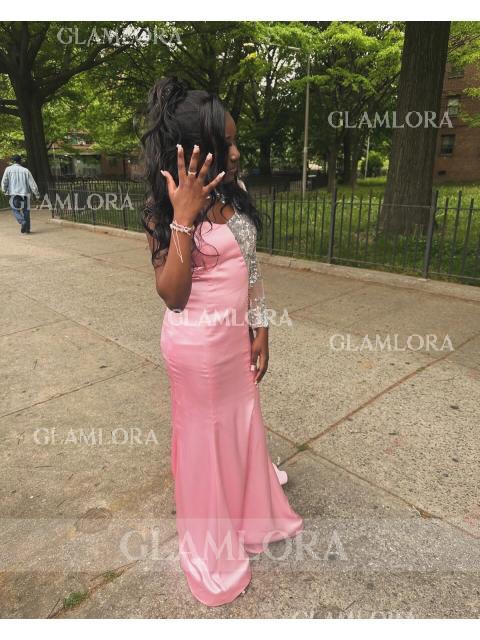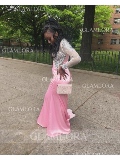 Warning: Undefined property: Product::$size_chart in /data1/www/glamlora-com.myamz2022.com/htdocs/controllers/front/ProductController.php on line 1066 Trumpet/Mermaid One-Shoulder Long Sleeves Enchanting Sweep Train Silk like Satin Prom Dress With Applique - Glamlora