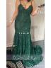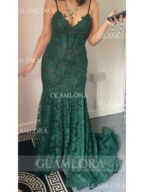 • Trumpet/Mermaid V-Neck Sensual Sleeveless Sweep Train Lace Corset Prom Dress