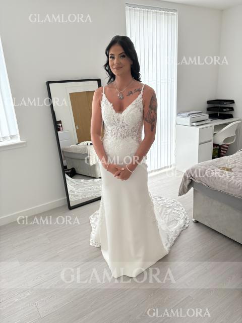 Warning: Undefined property: Product::$size_chart in /data1/www/glamlora-com.myamz2022.com/htdocs/controllers/front/ProductController.php on line 1062 Trumpet/Mermaid V-Neck Sleeveless Cathedral Train Open Back Stretch Crepe Graceful Wedding Dress - Glamlora