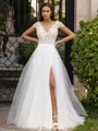 • Understated A-Line/Princess Lace Applique Scoop Short Sleeves Sweep/Brush Train Wedding Dress