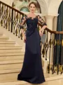 • Unforgettable Sheath/Column Satin Applique Bateau 1/2 Sleeves Sweep Train Mother of the Bride Dresses
