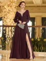 • Unique A-Line/Princess Chiffon Ruched V-Neck Long Sleeves Floor-Length Mother of the Bride Dresses