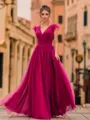 A unique A-line prom dress crafted from soft, ethereal tulle, featuring charming ruffle accents and a flattering V-neckline. The sleeveless design enhances its light, airy appeal, while the floor-length silhouette creates a graceful, standout look perfect for making a stylish and unforgettable entrance.