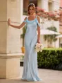 A stylish sheath bridesmaid dress featuring a cold shoulder design and sleeveless cut. Made from luxurious silk like satin, this floor-length dress offers a sleek, figure-flattering silhouette. A delicate bow detail adds a feminine touch, enhancing the overall elegance and charm. Perfect for a modern yet sophisticated wedding look.