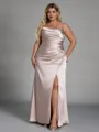 • Unique Sheath Spaghetti Straps Pleated Floor-Length Silk Like Satin Plus Size Bridesmaid Dress