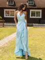 • Unique Sheath V-Neck Ruffles Asymmetrical Silk like Satin Bridesmaid Dress
